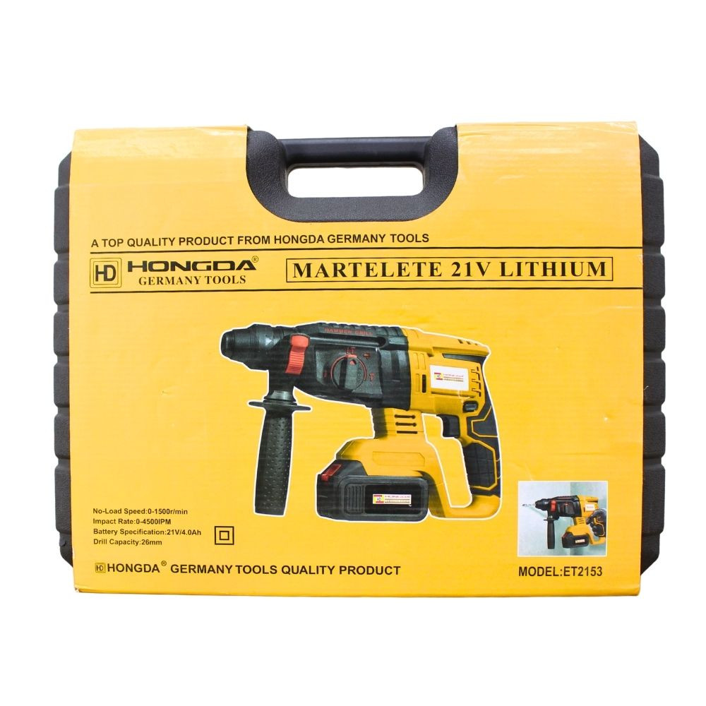 El martillo rotativo a batería Hongda 21V Lithium ET2153 combina potencia y movilidad para perforar en hormigón, mampostería y materiales de obra. Su batería de 21 V 4.0 Ah ofrece autonomía estable, con velocidad en vacío de 0–1500 rpm y tasa de impacto de 0–4050 golpes/min, logrando perforaciones de hasta 26 mm de diámetro. Incorpora empuñadura lateral antideslizante para mayor control y un diseño robusto con maletín de transporte, ideal para trabajo en obra o mantenimiento. La carcasa bicolor facilita la visibilidad en ambientes de trabajo. Una solución práctica para profesionales que necesitan rendimiento sin cables y cambios de frente rápidos.